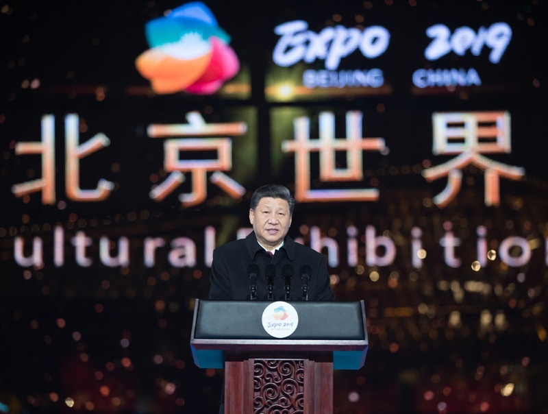 2019年4月28日,国家主席习近平在北京延庆出席2019年中国北京世界园艺博览会开幕式,并发表题为《共谋绿色生活,共建美丽家园》的重要讲话。新华社记者 王晔 摄