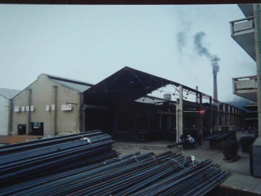图为沙钢建厂初期的轧钢车间,笔直的烟囱中正冒着滚滚浓烟。图片来源:中国冶金报社官方微信