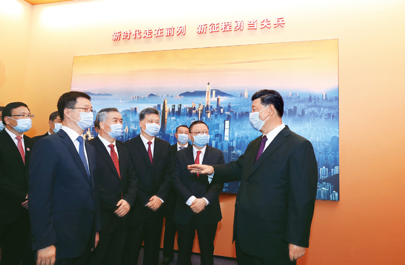 2020年10月14日,深圳经济特区建立40周年庆祝大会在广东省深圳市隆重举行。中共中央总书记、国家主席、中央军委主席习近平在会上发表重要讲话。这是当天上午,习近平等参观“从先行先试到先行示范——庆祝深圳经济特区建立40周年展览”。 新华社记者 鞠鹏/摄