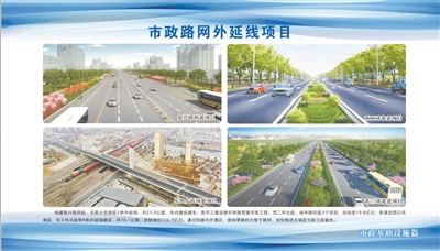 续建2条外延线项目,分别为复兴路西延(乐凯大街-满城区满于西路),乐凯大街南延(三丰路-清苑南环),共23.9公里,总投资38.62亿元,年内建成通车;新开工建设雄忻铁路预留市政工程、西二环北延(北二环-马坊路)、裕华路东延(职大路-环堤河)3个项目,总投资19.8亿元;新谋划8条外延线建设,共76.08公里,总投资约156.93亿元,包括西三环南延(建国路-保沧高速公路以南)、东三环北延(北三环-徐水巨力路)等,完成国土空间规划调整后立即启动。