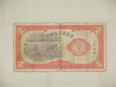 在晋察冀边区革命纪念馆,展柜中陈列着一张红色底纹的一元钞票,上面小黑马耕地的图案透着宁静的田园韵味,这是晋察冀边区银行当时印制的第一张边币。