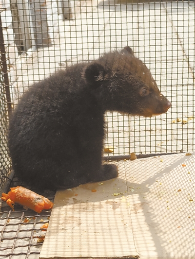 接连落地的新生命争相卖萌,也忙坏了动物园的饲养员们。4月26日上午,饲养员丁春喜正在冲奶粉,准备一会给这对双胞胎加餐。一旁的笼子里,吃饱饭的“熊大”正美美地晒着太阳。“‘熊二’还在窝里睡觉,晚一点也会抱出来,小动物和小孩子一样,多晒晒太阳补钙。”丁春喜向记者介绍着小家伙的伙食:“有鸡蛋、蒸熟的胡萝卜、苹果,还有掺了维生素和矿物质的玉米面蒸糕,每天还得喝两顿婴幼儿奶粉。”