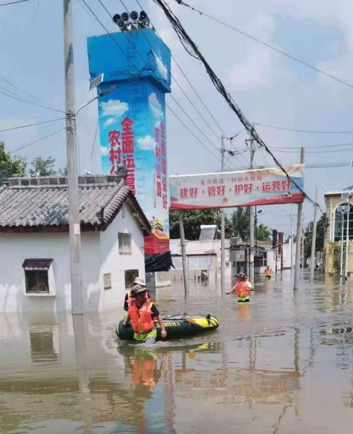 保定移动救灾突击队第一站赶赴河南安阳,队员们到达后立即投入到紧张的抗洪保障中,冲锋在抗汛救灾一线。面对杆路倒塌、电机损坏、交通阻断等棘手问题,保定移动救灾突击队不畏艰险,奋勇向前。他们在齐腰深的积水中,扶着救生艇涉水前行;他们在布满淤泥的路面上,留下勇敢坚定的足迹;他们寻找抢修位置,凭借过硬的技术水平,快速修复故障,保障通信畅通;他们无畏风雨,不分昼夜,饿了就吃点简餐,双腿因为长时间浸泡在泥水里引发皮炎……