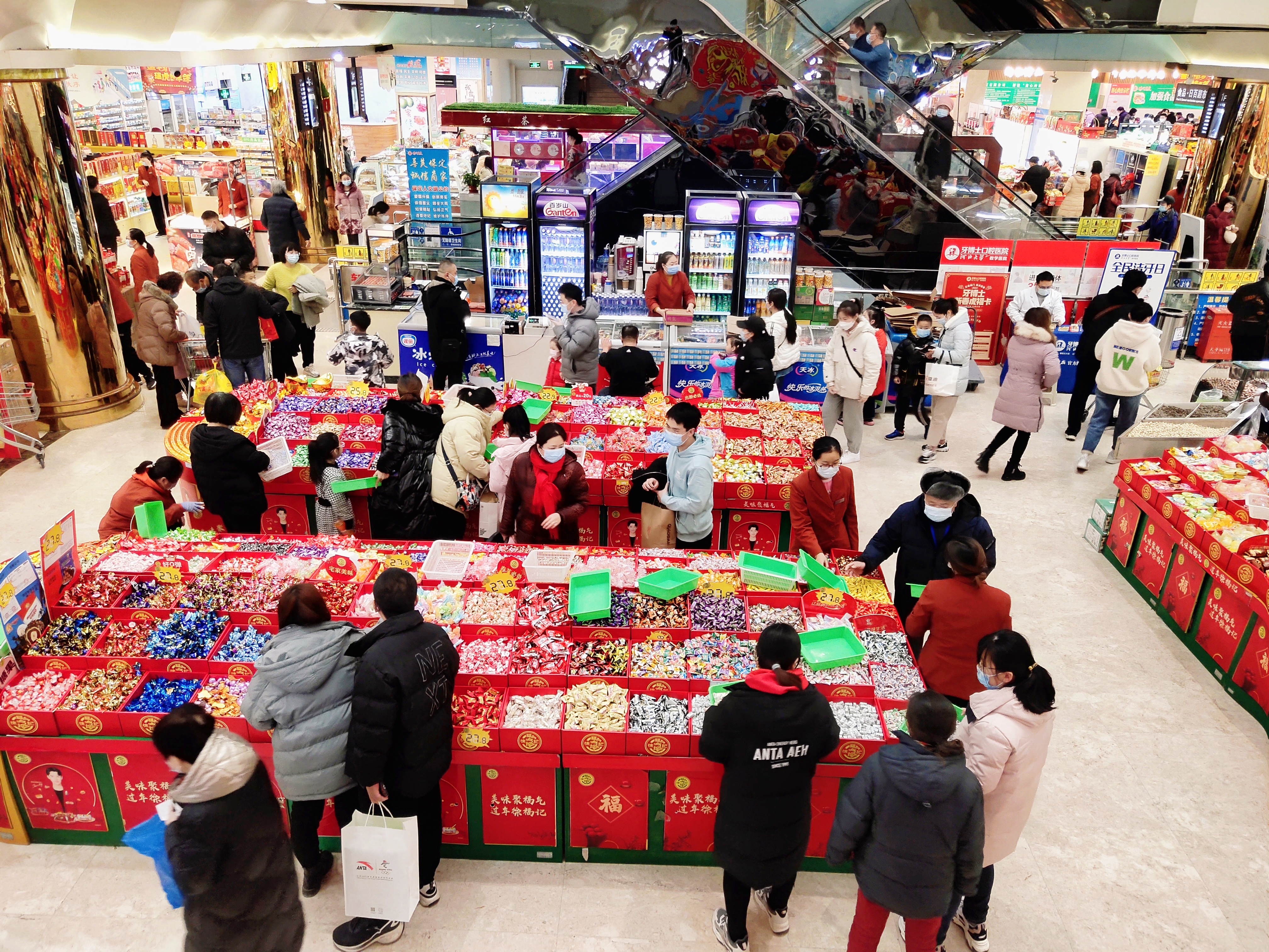 朝阳大街时代商厦,一楼大厅浓浓的年味儿充斥着各个角落,节日礼盒、柜台装饰、精致的食品都被鲜艳的中国红渲染着。“从进入腊月,销售就呈现出喜人态势,不光干果区、糖果区,其他卖场都不错,销量均超过了去年的这个时候。”食品商场经理赵学军说,现在来买年货的人不光是市区的居民,各县的也不少,尤其是这两天越来越多。“年前备的货比去年增加了30%,不过看这样子,过了节就还得继续备货。”对于价格,干果类中进口产品略涨10%,其他大部分则与去年持平,有的还降低了一点点。糖果类也都是平民价,从二十几元到四十元不等。“价格不高,质量还好,很多老顾客品尝完纷纷回馈称比去年的好吃。这也是商家们想着薄利多销的结果。”赵学军说,前几天精品礼盒卖得好,例如“三只松鼠”已经缺货,这两天则以散货为主,“大家走亲访友后,开始给自己家买些花生瓜子糖果蜜饯之类的年货。”据介绍,商厦营业时间从早9时至晚8时30分,过年期间营业时间早9时至晚6时30分,根据客流量随时调整。
