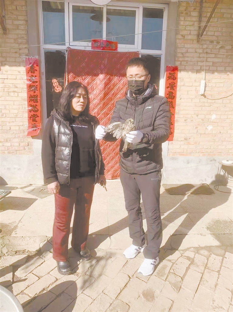 据刘艳霞介绍,当天早晨起来,她发现自家院里落有一只受伤的鸟儿,“看着像猫头鹰,翅膀受伤了。”不知道如何救治的刘艳霞先发信息到微信群进行咨询,随后拿来肉食喂给受伤的鸟。很快,微信群里有人回复说个人不能收养这只鸟,有人发来高阳县国土资源和规划局的电话。