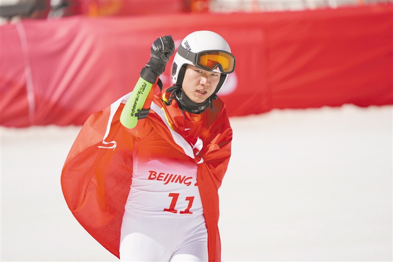 在此前一天举行的男子滑降站姿组的比赛中,梁景怡以1分16秒36的成绩获得第4名,未能登上领奖台。经过20多个小时的调整和休息之后,在超级大回转站姿组比赛中,梁景怡排在所有选手第1位出发,他从出发、滑行到结束发挥出色,用时1分09秒11,将领先优势保持到最后,为中国队在高山滑雪项目再添一枚金牌。