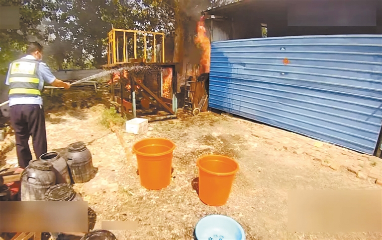 随后,贾辉、齐冬、李欢三人跑到失火现场。考虑到周围住房密集,火势越来越迅猛,一旦扑救不及时,必然会继续蔓延,后果不堪设想。为防止意外发生,执勤交警兵分两路,齐冬负责紧急疏散围观群众并拨打“119”消防电话,贾辉和李欢则拿起身边可用的工具,不顾个人安危迅速投入到扑灭火情行动中。
