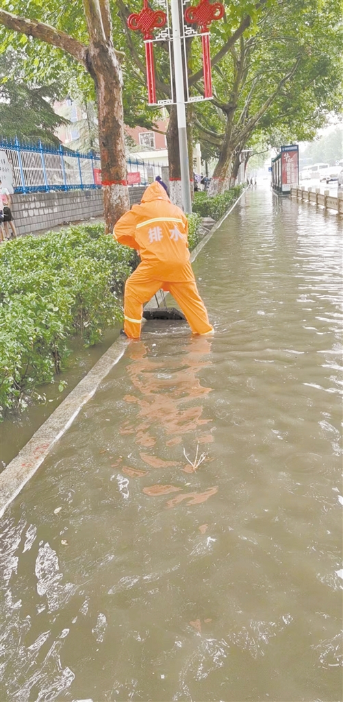 保定晚报讯(记者邸志永 通讯员刘云飞)专人盯守拉开雨箅子排水,架设警示标志提醒市民,疏通清理排水设施助排积水,冒雨处理各类堵塞积水问题……8月6日一场暴雨,我市多条道路积水,排水服务中心出动300余人次尽全力处置积水。