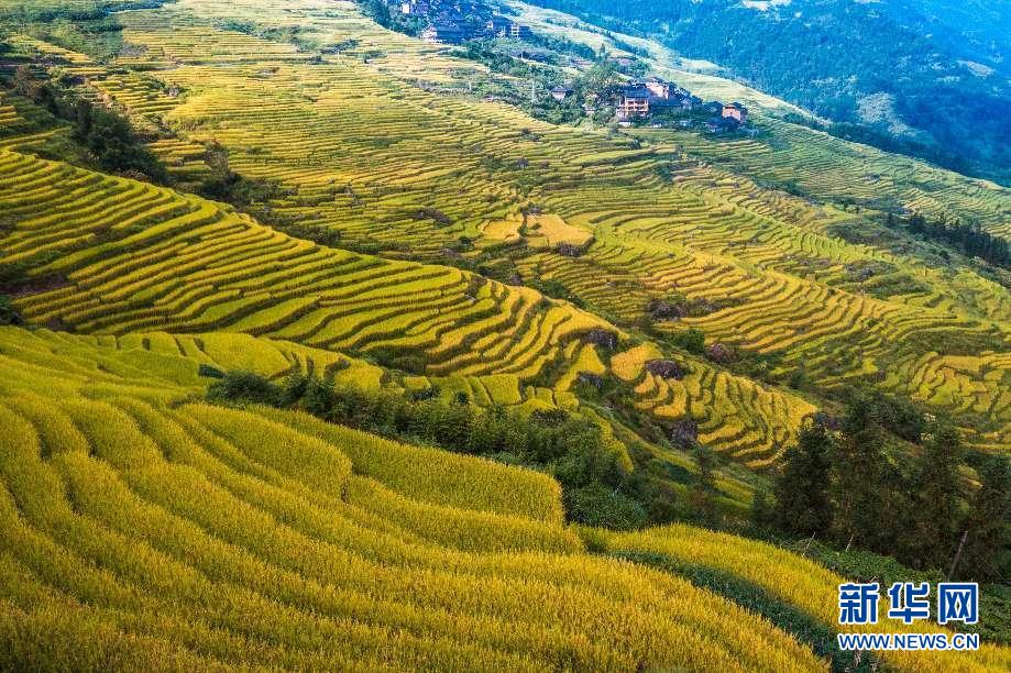 寨落徜徉在金黄的梯田里,即将迎接新的丰收年。