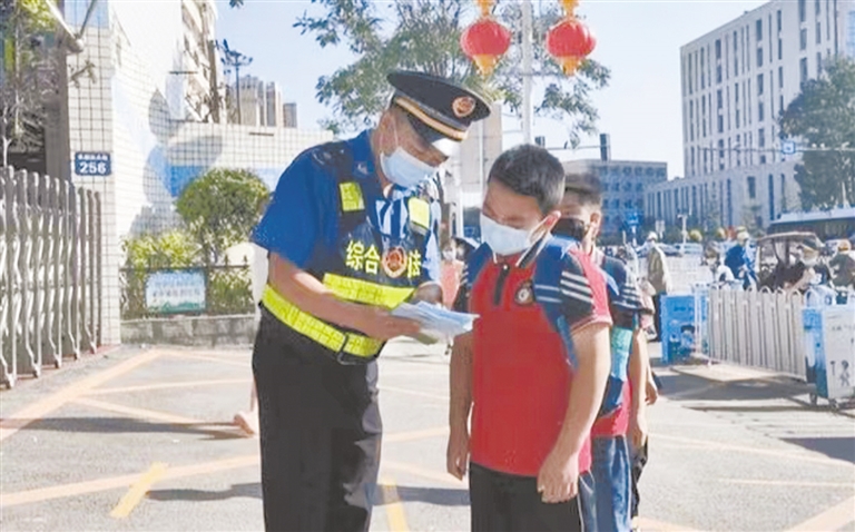 此外,包括一大队、环卫、机动车管理中队等执法局各部门,对学校周边市容环境秩序进行了管理、盯守。完善校园“门前五包”管理制度,对周边100米范围内的沿街门店进行逐一走访,入店宣传倡导,排查问题,建立台账,加强预判,加大上、下学道路的执法管理力度。