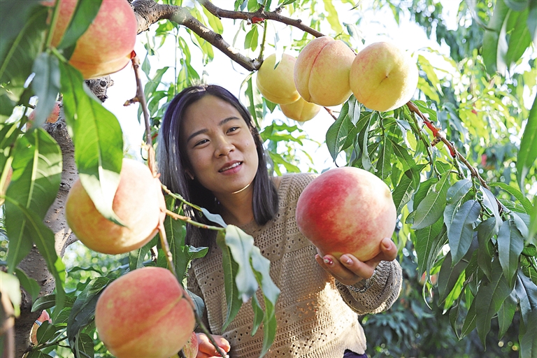 “别看只是桃子,产业可大着哩!我们还打造出自主品牌,产品线上线下销往全国各地。”秋收时节,涿州市新碧园农场负责人郑立梅信心满满,“我们的‘金蜜2号’是中国农科院历经8年研发的新品种,亩产可达7000公斤,单个桃子最大可达1.5公斤。”