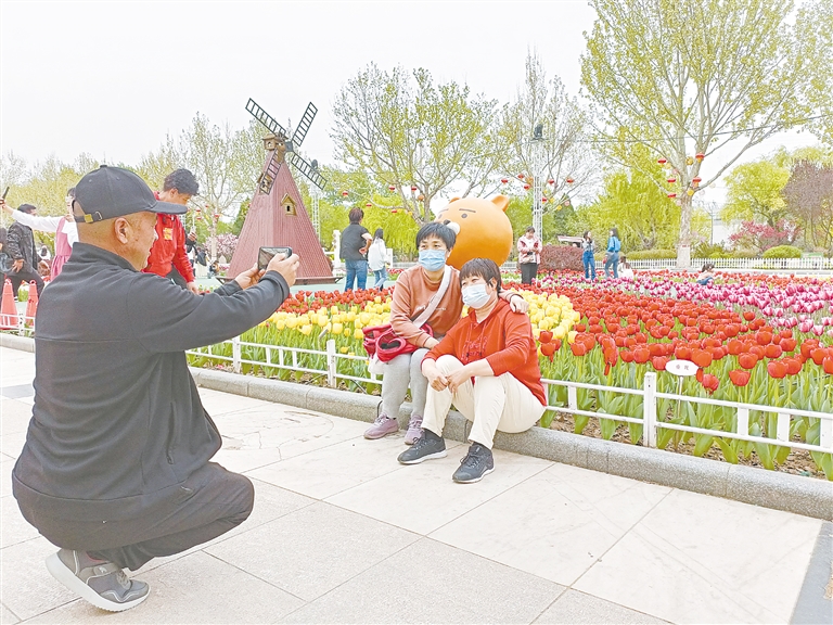 “妈妈,快帮我和鲜花拍照!”孩子的呼声伴随着笑容,在郁金香展上四起。不少市民携家带口出动欢乐游园。各种摄影发烧者也携带“长枪短炮”前来,拍下春之美景、花之妖娆。张振铭是一名摄影爱好者,平常拍花鸟居多,特意来到花展拍摄,除了佩戴专业相机和闪光灯外,他还向记者介绍了他的拍摄技巧——随身携带一小瓶浇花喷壶,“选好角度,在郁金香旁喷上细小的水雾,阳光下会产生逆光作用,显得花特别鲜嫩欲滴。”