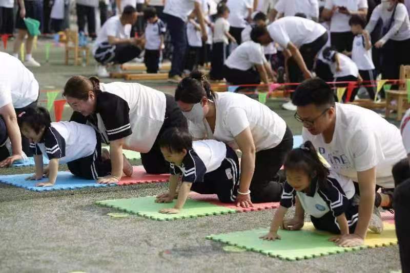 开幕式上,小朋友表演了趣味体能操,教师团队表演了青春洋溢的团体操。亲子运动会比赛项目开始,家长和小朋友们默契配合、共同参与,一起感受亲子运动的快乐和魅力。此次运动会得到了家长们的大力支持,共有36名家长志愿者参与到活动中来。