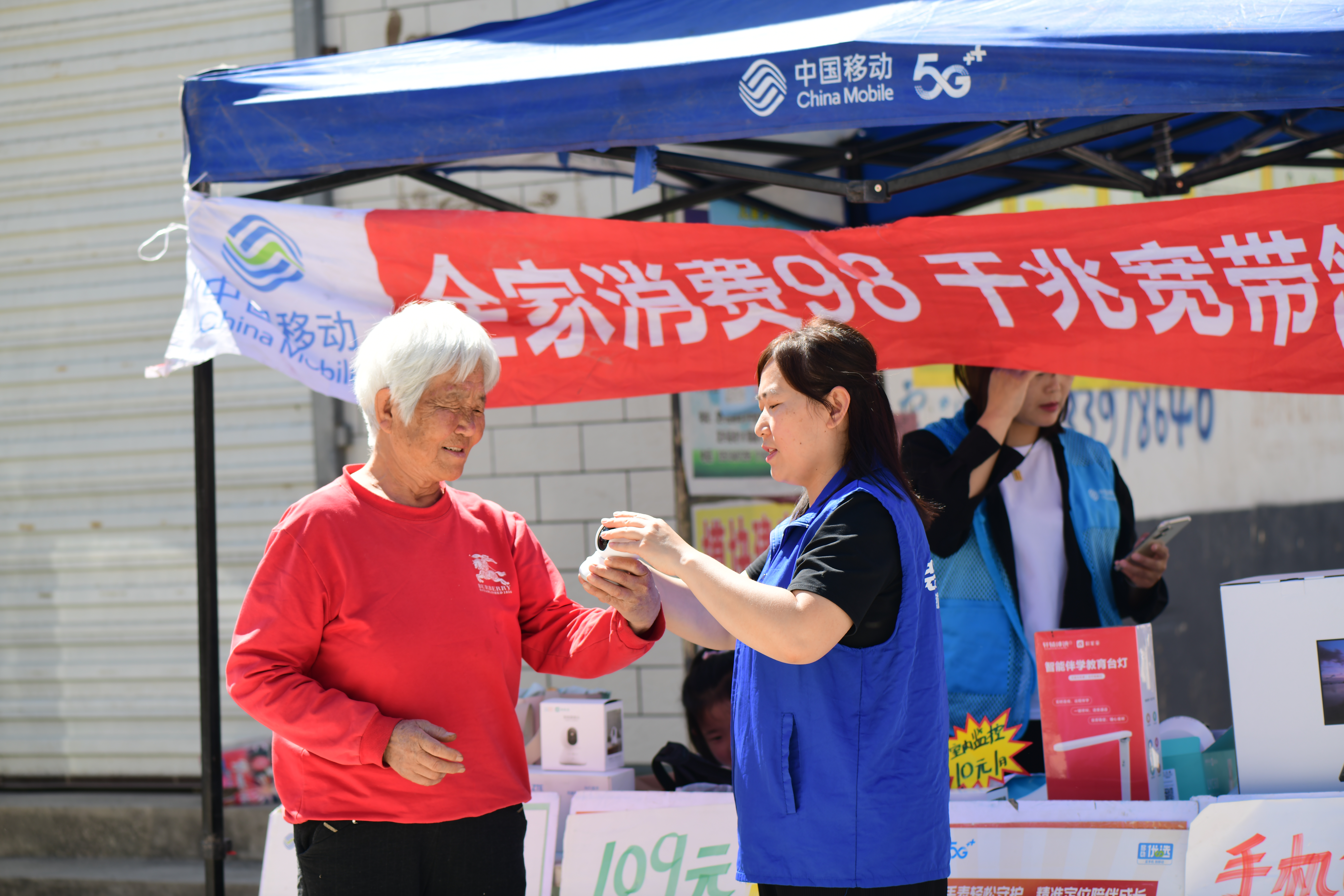 母亲节这天,定兴“移家人”志愿者们走进李郁庄村,为村里的妈妈们提供手机义诊、讲解互联网产品使用、免费量血压等志愿服务,为母亲们送上一份特殊的礼物。活动现场,志愿者详细了解“妈妈们”近期的健康状况,借助“和家亲”智能血压计为她们免费测量血压,并向进厅的“妈妈们”讲解移动看家摄像头的看家护院的作用,并教给妈妈们手机里中国移动“和家亲”APP如何使用、收看健康讲堂讲座、查看健康咨询及电视新闻直播的观看方法,手把手教老人一步步完成手机业务的查询、退订等操作,通过贴心的服务,传达母亲节祝福。