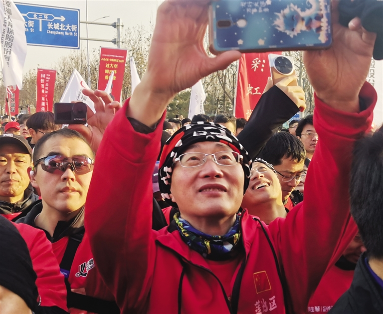 在跑步的队伍里,43岁的刘钊一路面带微笑。他坦言,自己平时工作压力大,喜欢通过跑步缓解情绪。“我们常常为了别人拼命,忘了照顾自己。跑步是一件只与自己有关的事,今年我希望把更多时间花在自己身上。”