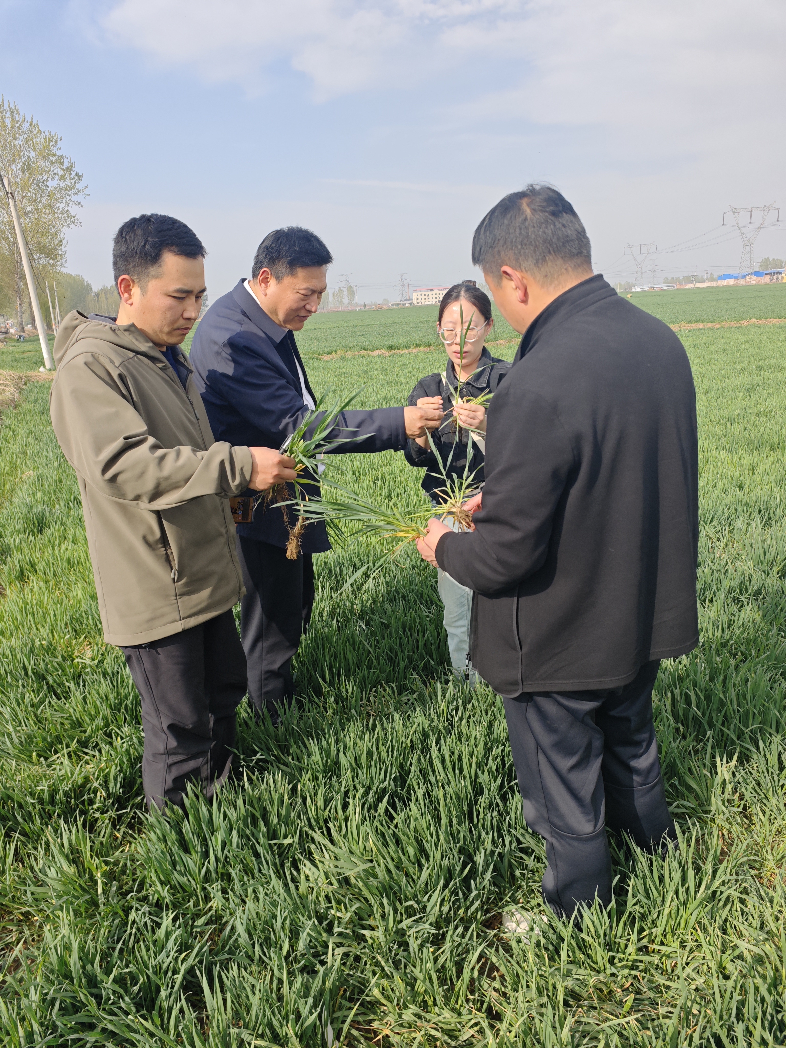 市农业农村局技术人员到田间指导农户应对大风天气。