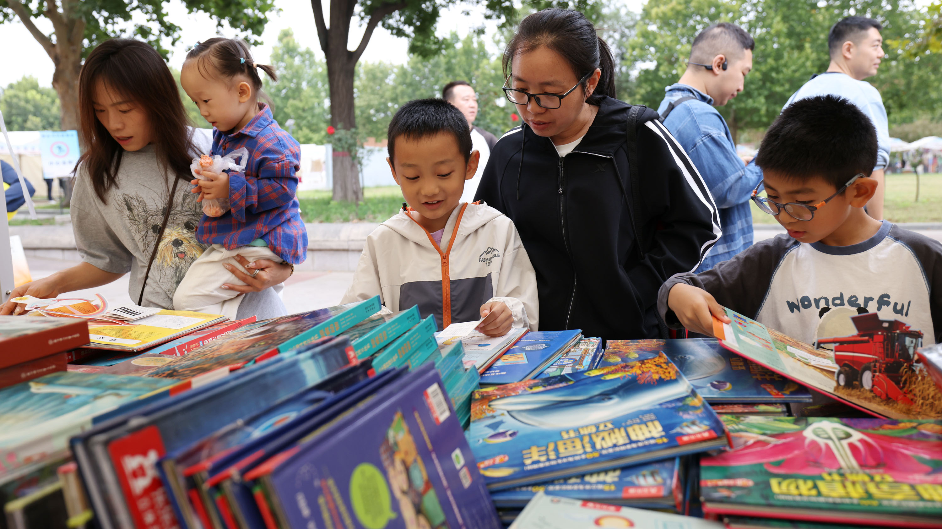 主舞台热闹非凡,书摊前更是人头攒动。在儿童图书区,书架上摆满了绘本、童话、科普读物。小读者或静静翻阅,或三五成群,在数不尽的书中翻找着自己心仪的那本。